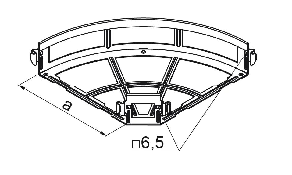 Зміна напрямку кабельної траси. Матеріал S - Сталь, оцинкована методом Сендзіміра PN-EN 10346:2015-09 Доступні варіанти оздоблення: F - гарячеоцинкована сталь PN-EN ISO 1461:2023-02 E - нержавіюча сталь L - фарбування у стандартний колір RAL