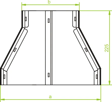 Розгалуження кабельних трас Матеріал Сталь, оцинкована стрічка згідно з Сендзіміром метод згідно з PN-EN 10346:2015-09 Доступно для замовлення: F - сталь, гарячеоцинкована. відповідно до PN-EN ISO 1461:2011 E - нержавіюча сталь (SS), клас 1.4301 (AISI304)