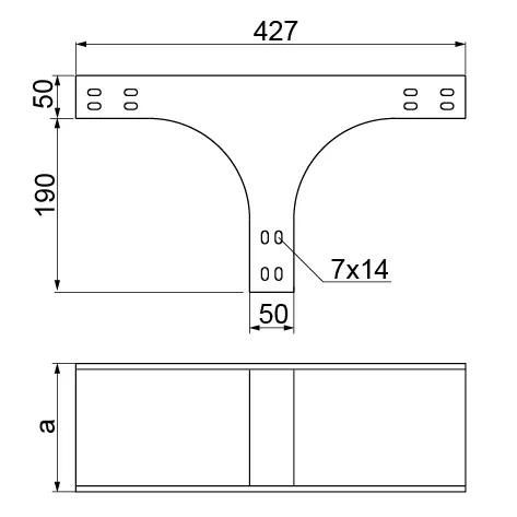 Розгалуження кабельної траси. Матеріал F - гарячеоцинкована сталь PN-EN ISO 1461:2023-02 Доступні варіанти оздоблення: E - нержавіюча сталь L - фарбування у стандартний колір RAL Додаткова інформація – для підключення фітинга до лотка використовуйте з'єднувач LCC... або комплект з'єднувачів LZC... та болти SGKFM6x12 або SGFM6x12