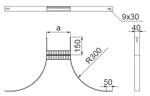 Розгалуження кабельної траси. Матеріал F - гарячеоцинкована сталь PN-EN ISO 1461:2023-02 Доступні варіанти оздоблення: E - нержавіюча сталь Додаткова інформація – використовуйте з'єднувачі LDOUH40 та болти SGKFM8x16 для кріплення