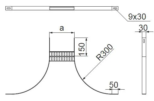 Розгалуження кабельної траси. Матеріал F - гарячеоцинкована сталь PN-EN ISO 1461:2023-02 Доступні варіанти оздоблення: E - нержавіюча сталь Додаткова інформація – використовуйте з'єднувачі LDOUH30 та болти SGKFM8x16 для кріплення