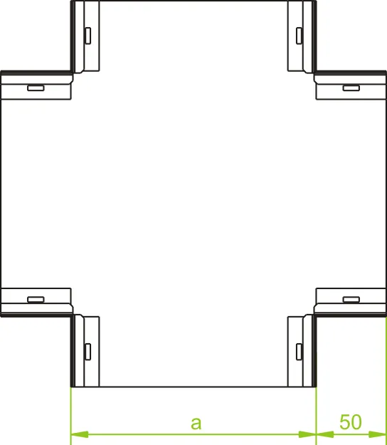 Розгалуження кабельних трас Матеріал Сталь, оцинкована стрічка згідно з Сендзіміром метод згідно з PN-EN 10346:2015-09 Доступно для замовлення: F - сталь, гарячеоцинкована. відповідно до PN-EN ISO 1461:2011 E - нержавіюча сталь (SS), клас 1.4301 (AISI304)