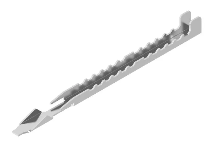 Елемент, що з'єднує підвіс з трапецієподібним листом. Забезпечує швидкий монтаж. Підходить для всіх підвісів. Матеріал S - Сталь, оцинкована методом Сендзіміра PN-EN 10346:2015-09 Доступні варіанти оздоблення: FP - оцинкований методом цинкової стружки PN-EN ISO 10683:2018-11 E - нержавіюча сталь L - фарбування у стандартний колір RAL