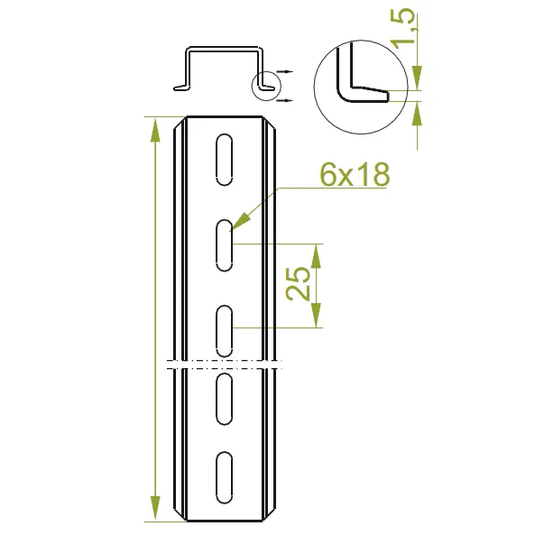 DIN-рейка SZA35H15/2 (613221) Виробник: BAKS Артикул: SZA35H15/2 Ціна за дзвінком Кількість: Замовити Індивідуальний список бажань ОК Додати до списку бажань Додати до списку порівняння Повідомити друга Монтаж запобіжників, контакторів, реле. Матеріал S - Сталь, оцинкована методом Сендзіміра PN-EN 10346:2015-09 Доступні варіанти оздоблення: F - гарячеоцинкована сталь PN-EN ISO 1461:2023-02 L - фарбування у стандартний колір RAL Характеристики товару Назва атрибуту Значення атрибуту Системи кабельних трас Типи елементів din-рейка Висота борта H15 Товщина листа 1.5 мм Властивості матеріалу S - оцинкована сталь за методом Сендзіміра, F - гарячеоцинкована сталь, L - фарбування в стандартний колір RAL Вага 1шт [кг] 1.22 Кількість [шт] 50 Довжина L [мм] 2 000 mm Ширина a [мм] 35 Висота H [мм] 15