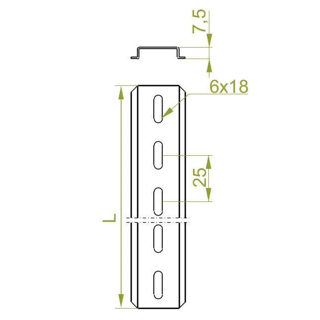 DIN-рейка SZA35H7/2 (613121) Виробник: BAKS Артикул: SZA35H7/2 Ціна за дзвінком Кількість: Замовити Індивідуальний список бажань ОК Додати до списку бажань Додати до списку порівняння Повідомити друга Монтаж запобіжників, контакторів, реле. Матеріал S - Сталь, оцинкована методом Сендзіміра PN-EN 10346:2015-09 Доступні варіанти оздоблення: F - гарячеоцинкована сталь PN-EN ISO 1461:2023-02 L - фарбування у стандартний колір RAL Характеристики товару Назва атрибуту Значення атрибуту Системи кабельних трас Типи елементів din-рейка Товщина листа 1.5 мм Властивості матеріалу S - оцинкована сталь за методом Сендзіміра, F - гарячеоцинкована сталь, L - фарбування в стандартний колір RAL Вага 1шт [кг] 0.60 Кількість [шт] 50 Довжина L [мм] 2 000 mm Ширина a [мм] 35
