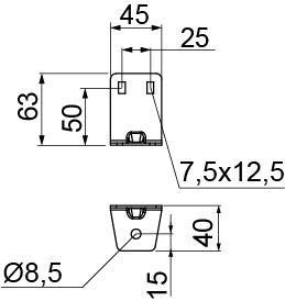 Кріплення лотків до основи. Матеріал S - Сталь, оцинкована методом Сендзіміра PN-EN 10346:2015-09 Доступні варіанти оздоблення: FP - оцинкований методом цинкової стружки PN-EN ISO 10683:2018-11 E - нержавіюча сталь Додаткова інформація – використовуйте болти SGKM6x14 для кріплення з лотками