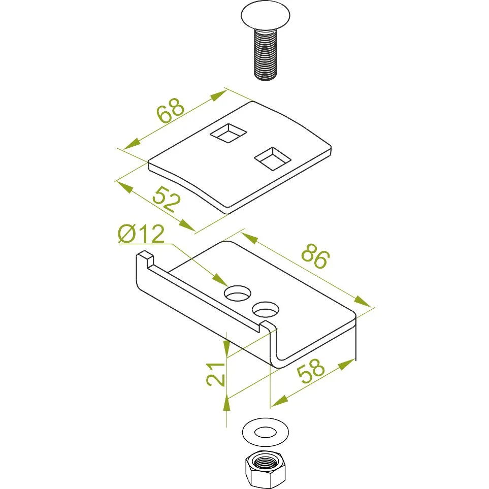 Монтаж кабельних та самонесучих драбин до сталевих конструкцій. Матеріал FP - оцинкований методом цинкової стружки PN-EN ISO 10683:2018-11 Додаткова інформація – УВАГА! Затискний кронштейн у комплекті з болтом SGFM10x40