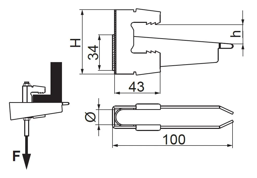 Кріплення стрижнів, хомутів тощо до: двотаврових балок, кутових профілів тощо Матеріал S - Сталь, оцинкована методом Сендзіміра PN-EN 10346:2015-09