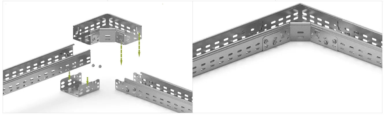 З'єднувальні лотки KLFL75H60... з кріпленням CLICK. Можна комбінувати зі стандартними лотками. Матеріал S - Сталь, оцинкована методом Сендзіміра PN-EN 10346:2015-09