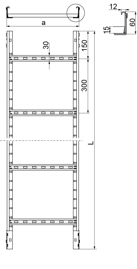 Прокладання кабельної траси. Матеріал MC - сталь з покриттям Mangelis® Додаткова інформація – швидкий та легкий монтаж – система без роз'ємів – стабільне застібне з’єднання – драбина зі сходами, що підходить для монтажу кабельних затискачів UK/UKO... та UKP... – опція E90 для довжин 100 – 400 мм
