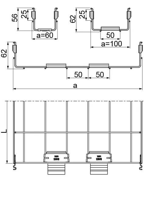 Кількість нижніх з'єднувачів для кабельних лотків такої ширини: