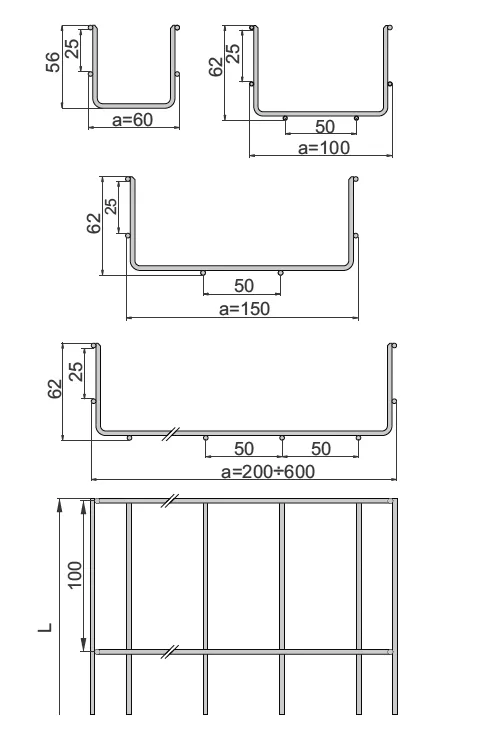 Всі кабельні лотки з дротяної сітки мають гладко обрізані кінці дроту, щоб запобігти пошкодженню кабелю